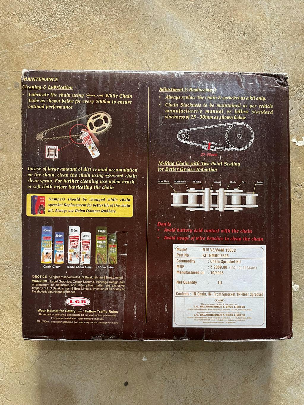 The Yamaha R15 V3 / V4 Rolon Brass Chain & Sprocket Kit is a high-quality replacement kit for the chain and sprockets on the Yamaha R15 V3 and V4 motorcycles. The kit is produced by Rolon, a well-known Indian manufacturer of motorcycle chains and sprockets.