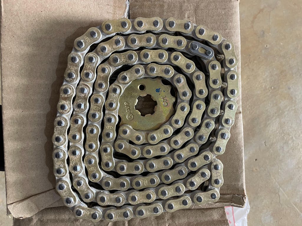 The kit includes a brass chain that is more durable than the standard chain and offers better resistance to wear and tear, ensuring a longer lifespan. The kit also includes front and rear sprockets made of high-strength steel. The sprockets are designed with precise tooth profiles that provide better power transfer and reduce wear and tear on the chain.